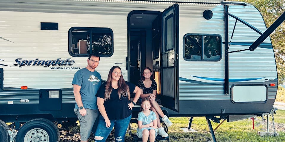 Brad & Jess are High School sweethearts, and have been married for nearly 15years! They live on their family farm in rural Missouri with their two girls, Jordyn & Zoey, their chocolate lab Chip & 2 cats. Adventure has been calling their names for some time – and in 2021 they decided to take the leap & explore all this diverse country has to offer! In 2022 they purchased their first camper - a Keystone Springdale 2820BH & have been traveling the US ever since!