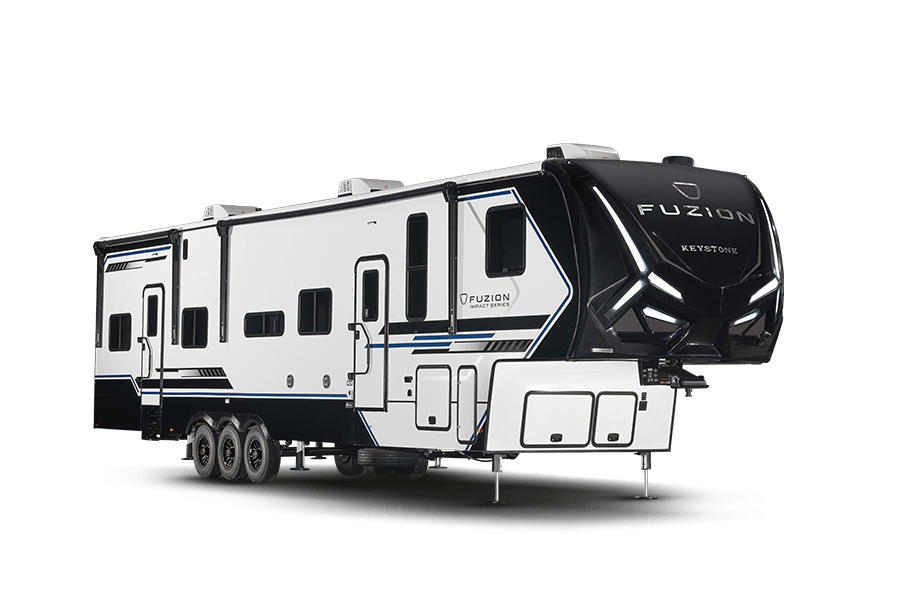 Toy haulers can be travel trailers or fifth wheels that incorporate the same great features that you'd find in each but with one significant advantage: the garage. Traditionally designed as a way for power sports enthusiasts to bring dirt bikes, UTVs, and even snowmobiles with them when they camp, in recent years, Keystone RV toy haulers have become increasingly popular with campers who like the flexible garage space for gear, hobbies, pets, a second bedroom, or even a traveling RV office. You truly get the best of both worlds: open-concept living and the ability to bring your toys with you!