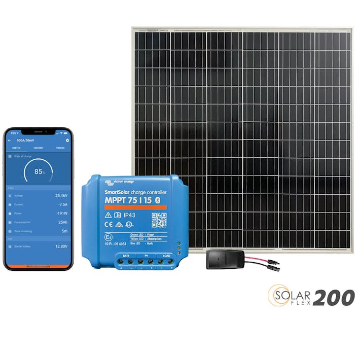 Protect your battery investment and keep voltage-sensitive components operating efficiently with 200-watts of solar on the roof. Designed with the owner in mind, SolarFlex 200 is a versatile base system that can be easily expanded to fit many different energy needs.